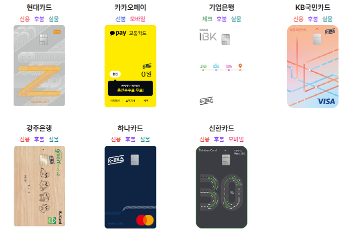 다양한 카드사의 K-패스 카드 중 원하는 카드 발급받기