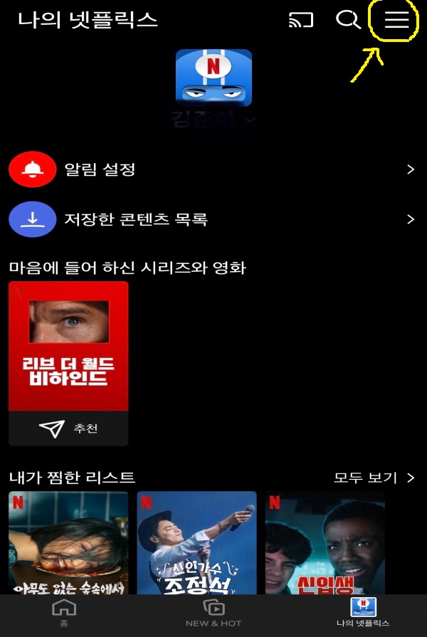1. 먼저, 앱에서 오른쪽 상단의 세줄 아이콘을 클릭하여 계정으로 들어갑니다.