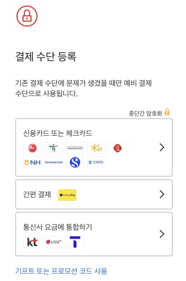 그래서 저처럼 처음 하시는 분들을 위해 결제수단 변경하는 방법을 정리해 보았습니다.