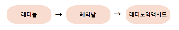 레티놀과 레티날의 차이는 체내 대사를 통해서 변형된 성분의 전후 과정이라고 보면 됩니다. 즉, 레티날은 레티놀이 체내에 흡수되면서 대사 과정을 통해 변형된 성분인데요. 레티놀은 레티날로, 레티날은 체내 대사를 통해서 최종적으로 레티노익액시드라는 성분으로 전환됩니다. 하지만 레티놀 - 레티날 2단계를 거치면서 대부분 미량만 레티노익액시드로 대사 되어 그 효능은 미비하다고 합니다.