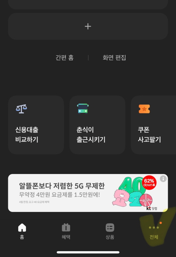 - 전체 메뉴 접속: 하단 오른쪽의 '전체' 메뉴를 선택합니다.