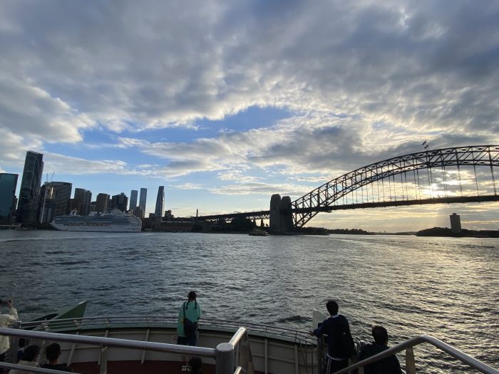 왓슨스 베이에서 다시 서큘러키로 돌아가는 길! 하버브릿지를 배경으로 뉘엿뉘엿 지는 노을이 너무 멋지다.
