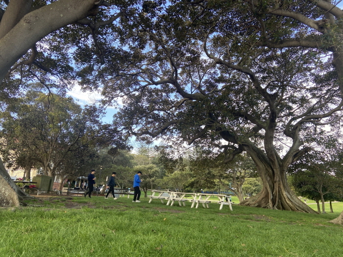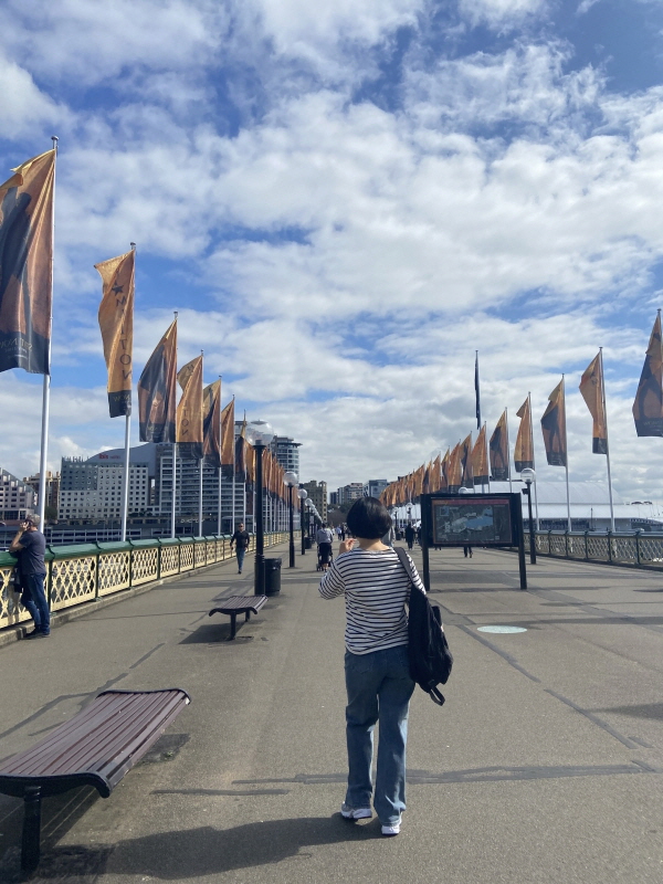 이 날 낮에는 오른쪽에 입은 도톰한 가디건을 입고 있다가 낮에 더워서 벗고 다녔는데 난 저 스트라이프 티셔츠도 덥게 느껴졌다. 이 시기에 호주를 가면 사계절 옷을 모두 볼 수 있다는 말을 들은 적이 있는데 진짜 그랬다. 경량패딩, 모직코트부터 반팔, 민소매까지 사계절 옷차림을 동시에 볼 수 있는 진기한 풍경이었다. 저 다리 위에서만도 온갖 종류의 옷을 다 보았다는. 그러고보니 올해 한국 가을날씨가 8월의 호주 날씨와 비슷한 것 같다. 반팔 옷차림부터 겨울코트, 패딩까지 동시에 보게되는 걸 보면...
