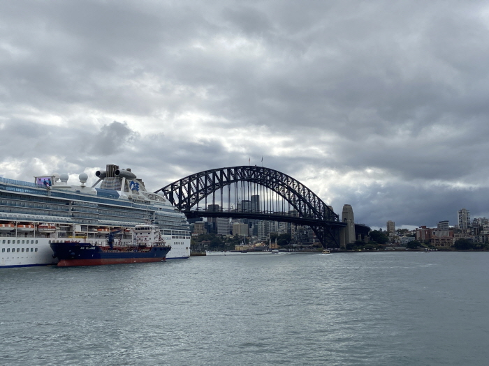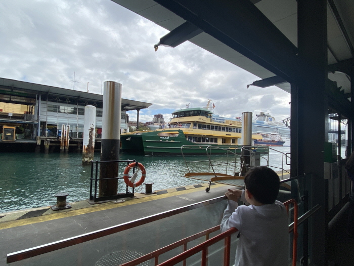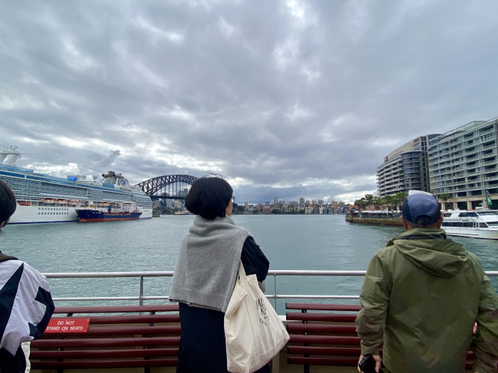 여행 마지막 일정인 왓슨스 베이를 가기 위해 페리타러 서큘러키로 갔다. 크루즈가 정박해 있는데 실제로 크루즈 처음 보는데 크기가 어마어마하더라구요. 어디를 여행하는 크루즈인지 궁금해지네요.