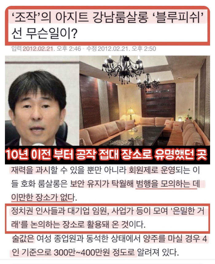 해당 룸살롱은 3~4명이 술자리를 즐길 경우 400~500만원 정도 나오는 고급 유흥주점으로 예약제로 운영되며 보안이 철저하게 되는 곳이라고 합니다. '블루피쉬'라고 현재 해당 유흥주점의 이름이 거론되고 있는데 현재는 '썸데이'로 이름이 바뀌었다고 합니다. 이 곳은 소위 텐프로 룸살롱으로 불리며, 여성 접대부 중 상위 10%만 고용하는 곳이라고 알려져 있습니다. 이곳에서 지귀연 판사는 수차례 접대를 받았다는 의혹이 불거지고 있는데 이 의혹이 사실이라면 청탁금지법 위반이 됩니다.